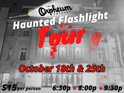 6:30, 8:00 & 9:30pm | See The Orpheum like you've never seen it before, with this Haunted Flashlight Tour. Learn about The Orpheum's history from a new angle, with tales of the spirits and spectators from years past that have made a home within the Jewel of Galesburg. Come ready to wander the halls in […]